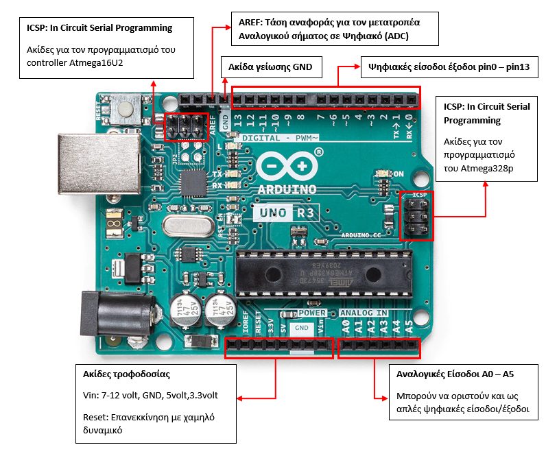 Ψηφιακοί και αναλογικοί ακροδέκτες του Arduino uno